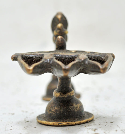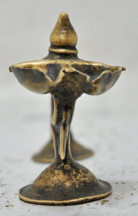 Antique Brass Temple Diya Light Aarti Stand Original Old Hand Crafted Engraved