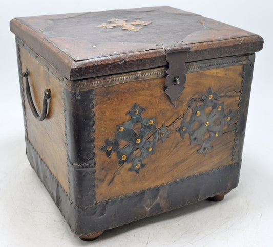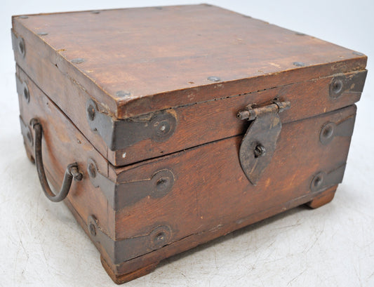 Vintage Wooden Square Storage Chest Box Original Old Hand Crafted Metal Fitted