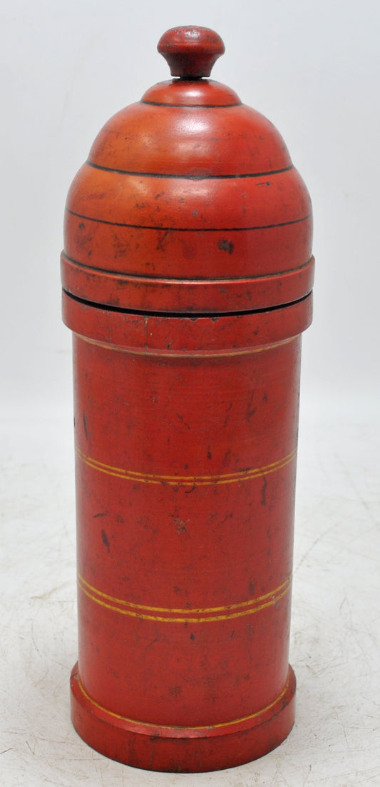Vintage Wooden Tall Candy Box Original Old Hand Carved Glossy Lacquer Painted