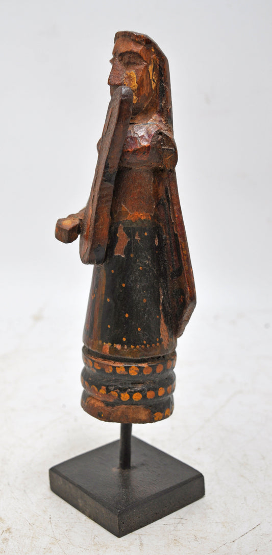 Vintage Wooden Woman Musician Figurine Original Old Hand Carved Painted