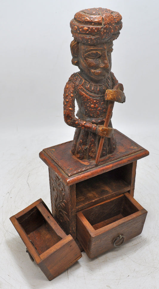 Vintage Wooden Watchman Figurine Drawers Box Original Old Hand Crafted