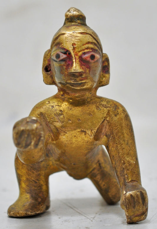 Antique Brass Baby God Krishna Idol Figurine Original Old Hand Crafted Engraved