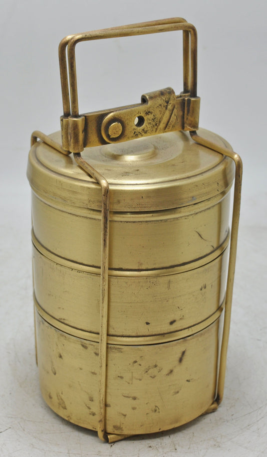 Antique Brass 3 Tier Tiffin Food Box Original Old Hand Crafted