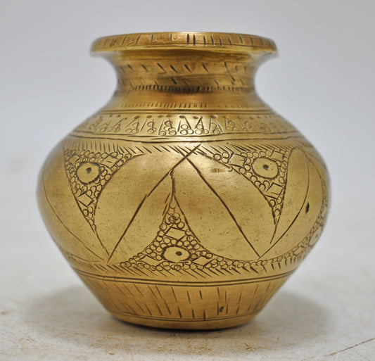 Antique Brass Drinking Pot Lota Original Old Hand Crafted Fine Engraved