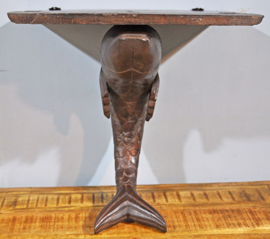 Antique Wooden Large Size Fish Shape Wall Hanging Shelf Original Old Hand Carved