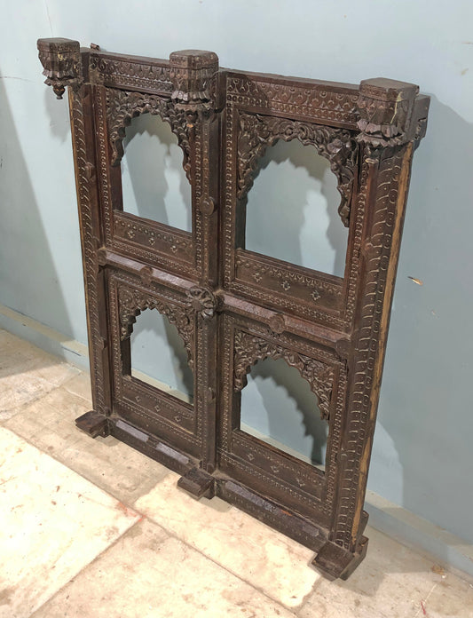 Antique Wooden Wall Décor Large Jharoka Arch Frame Original Old Floral Carved
