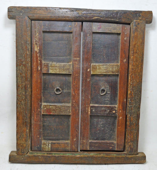 Vintage Wooden Wall Décor Window Panel With Frame Original old Hand Crafted