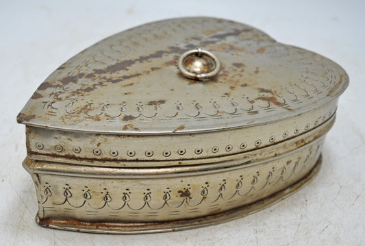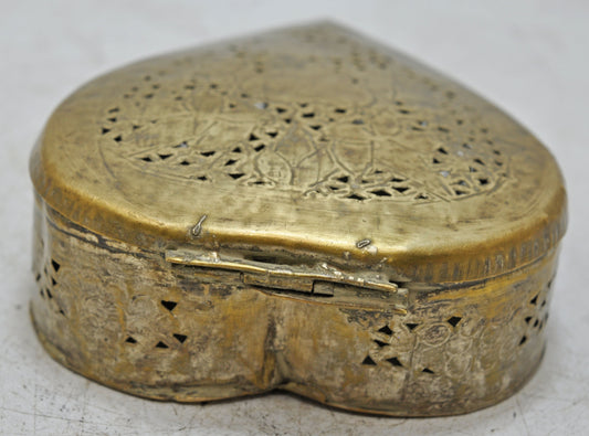 Antique Brass Heart Shaped Betel Leaves Box Original Old Fine Jali Cut Engraved