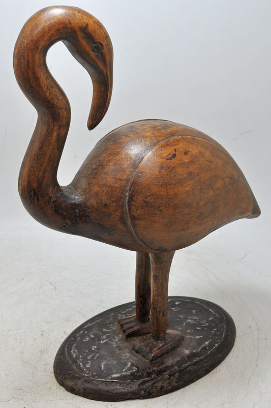 Vintage Wooden Large Size Crane Figurine Original Old Fine Hand Carved
