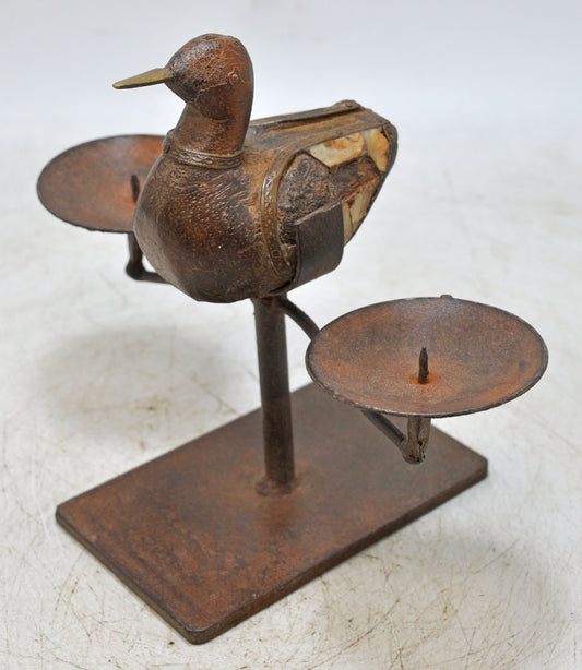 Vintage Wooden Duck Bird Figurine Candle Stand Original Old Hand Carved
