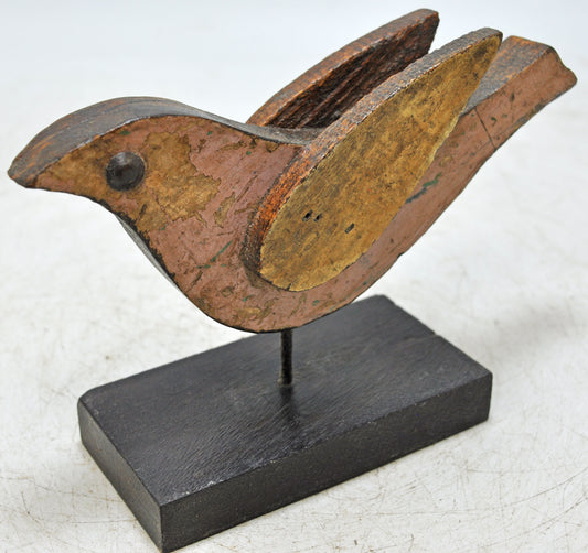 Vintage Wooden Bird Figurine Original Old Hand Carved