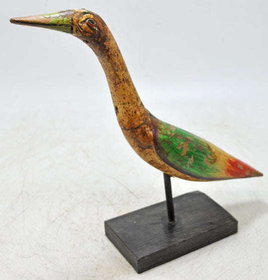 Antique Wooden Crane Bird Figurine Original Old Very Fine Hand Carved