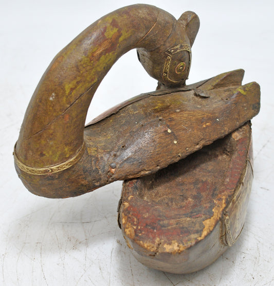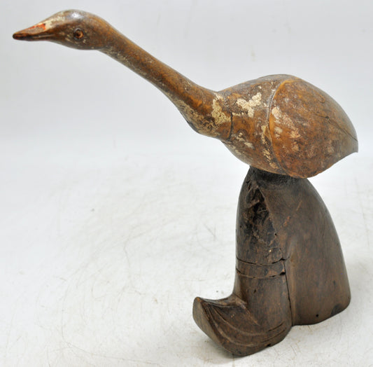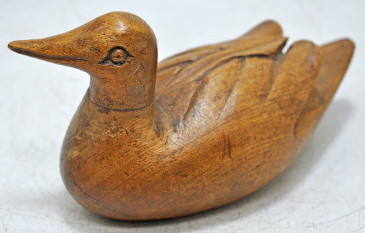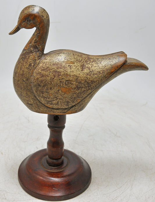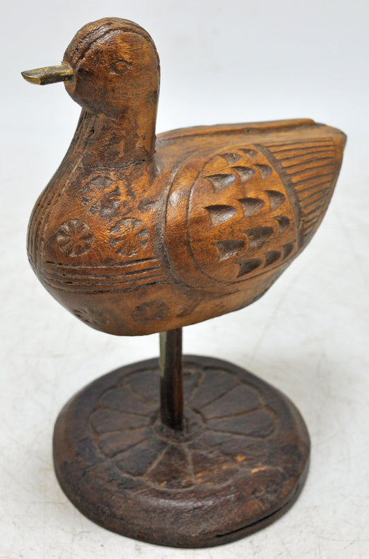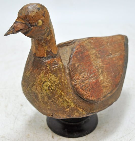 Vintage Wooden Duck Bird Figurine Original Old Hand Carved Brass Copper Fitted
