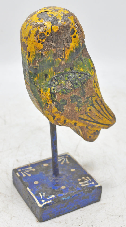 Vintage Wooden Owl Figurine on Stand Original Old Hand Carved Painted