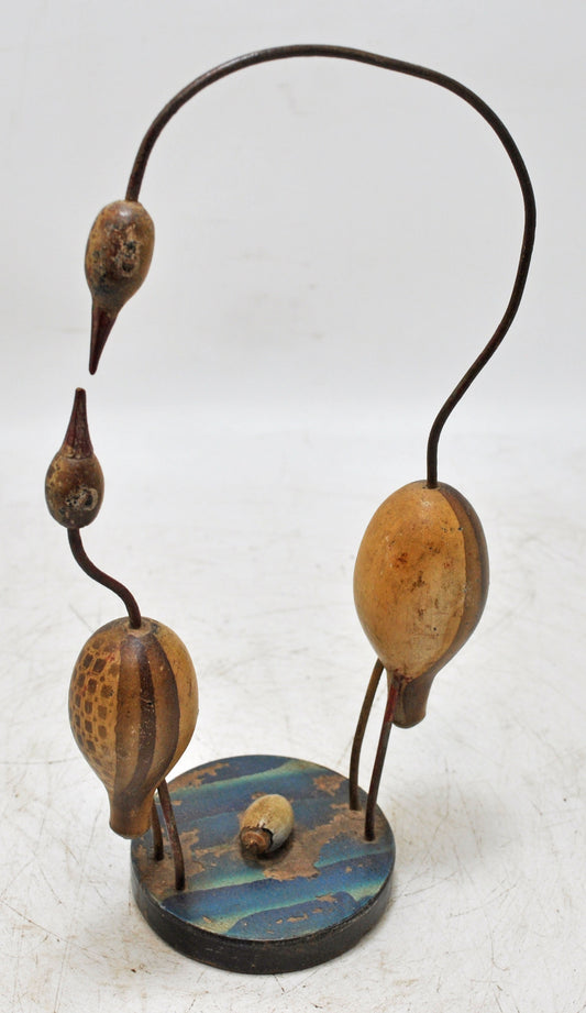 Vintage Wooden 2 Cranes Bird Figurine Original Old Hand Crafted