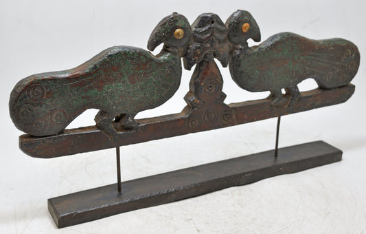 Antique Wooden 2 Peacock Carving Panel on Stand Original Old Hand Carved