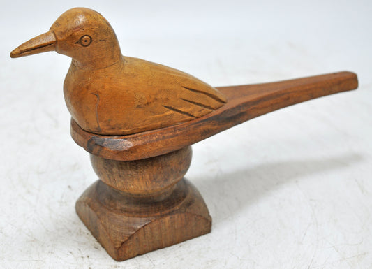Vintage Wooden Bird Figurine on Stand Original Old Hand Carved