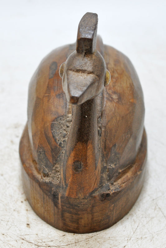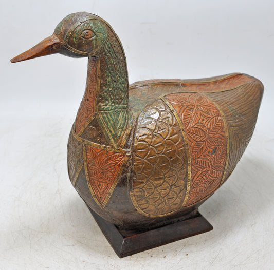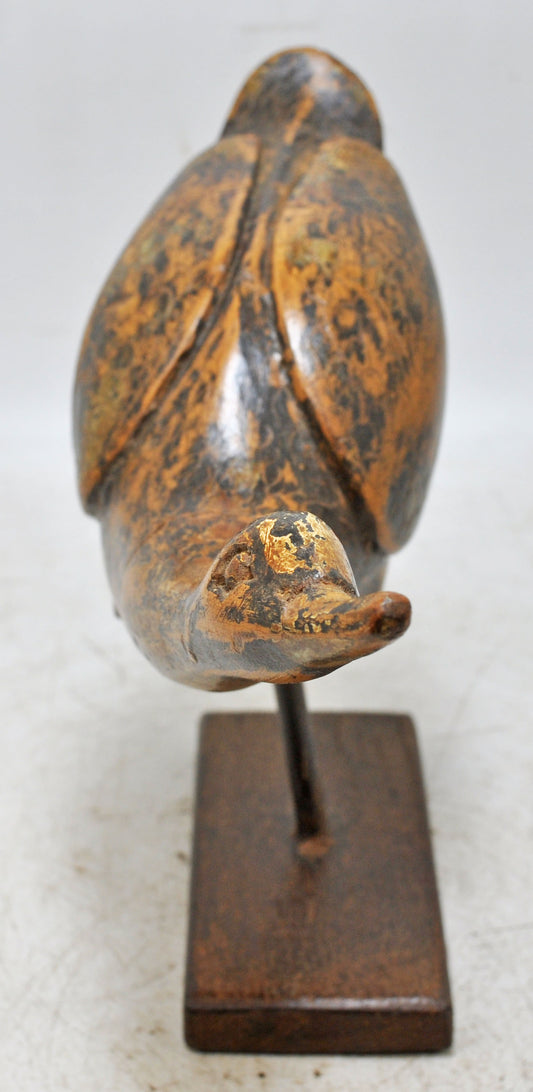 Vintage Wooden Bird Duck Figurine Original Old Hand Carved Brass Fitted
