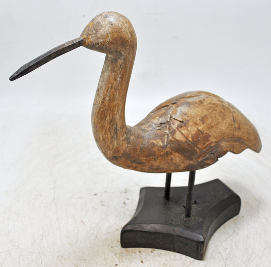 Vintage Wooden Crane Bird Figurine Original Old Hand Carved Painted