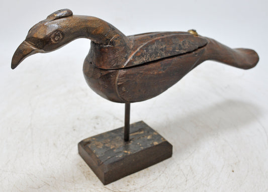Antique Wooden Peacock Bird Figurine Spice Box Original Old Hand Carved
