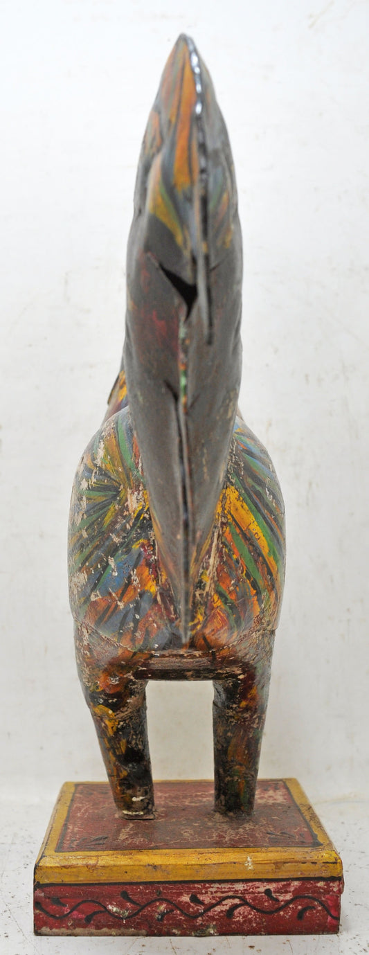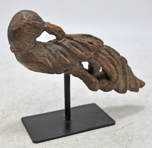Vintage Wooden Bird Figurine on Stand Original Old Hand Carved