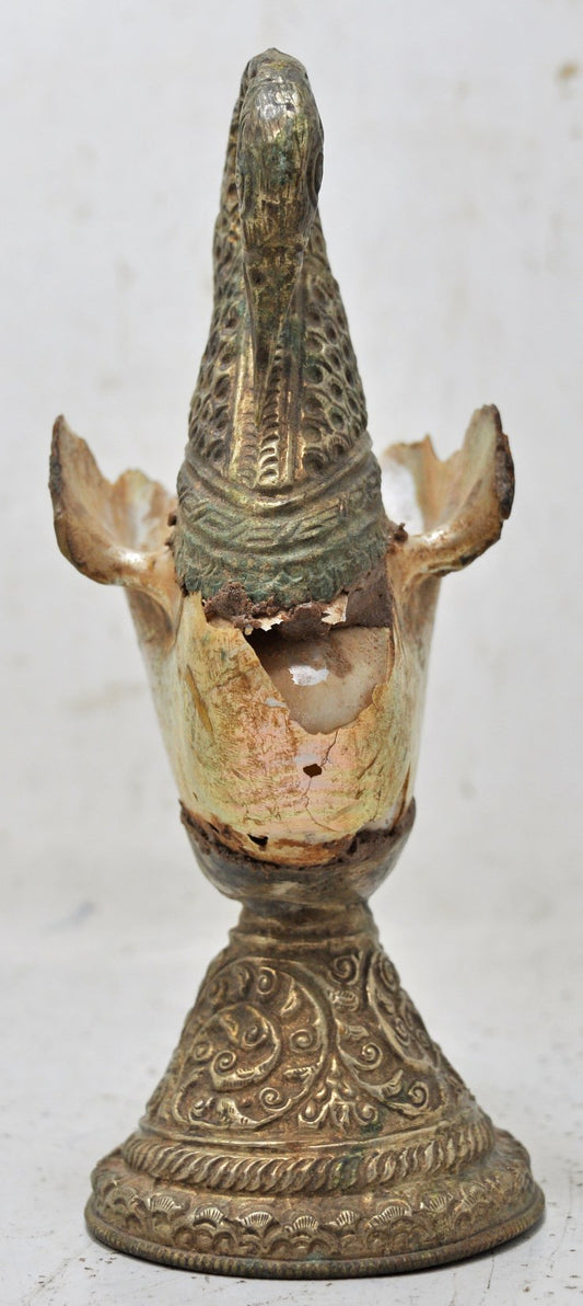 Antique White Metal Mother of Pearl Bird Figurine Original Old Hand Crafted Fine Piece