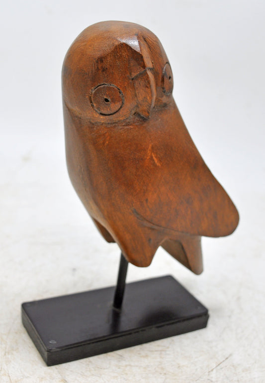 Vintage Wooden Owl Figurine Original Old Hand Carved