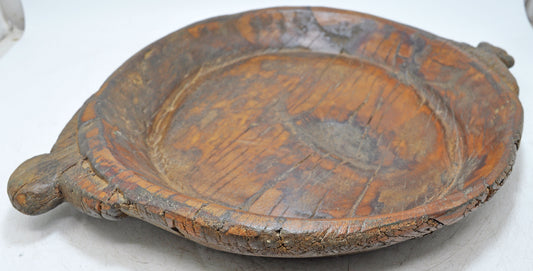 Antique Wooden Round Dough Kneading Parat Bowl Original Old Hand Carved
