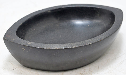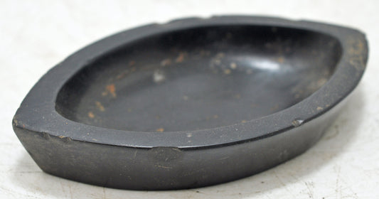 Antique Black Stone Oval Kharal Bowl Original Old Hand Carved