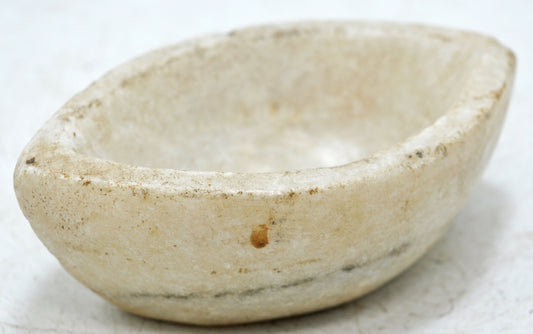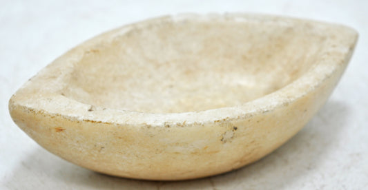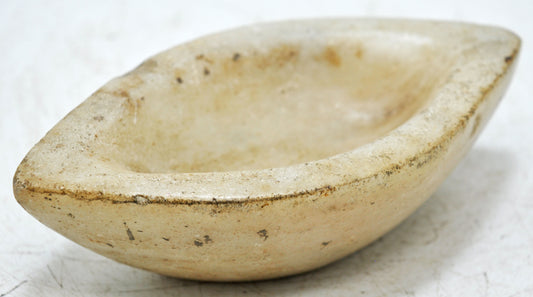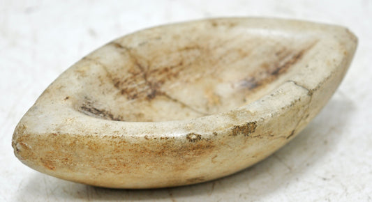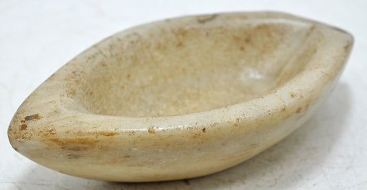 Antique White Marble Oval Kharal Bowl Original Old Hand Carved