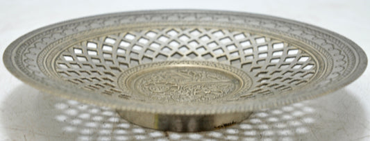 Antique Brass Round Decorative Plate Original Old Hand Crafted Jali Cut Engraved