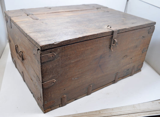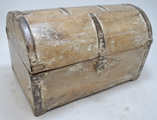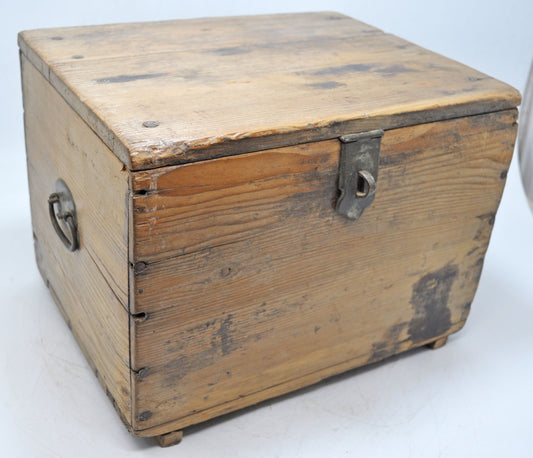 Vintage Wooden Storage Box Original Old Hand Crafted Metal Fitted
