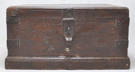 Vintage Wooden Square Storage Chest Box Original Old Hand Crafted Metal Fitted