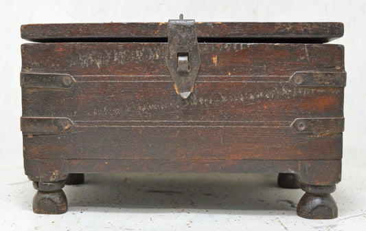 Antique Wooden Large Cash Chest Money Box Original Old Intricate Crafted Polychrome