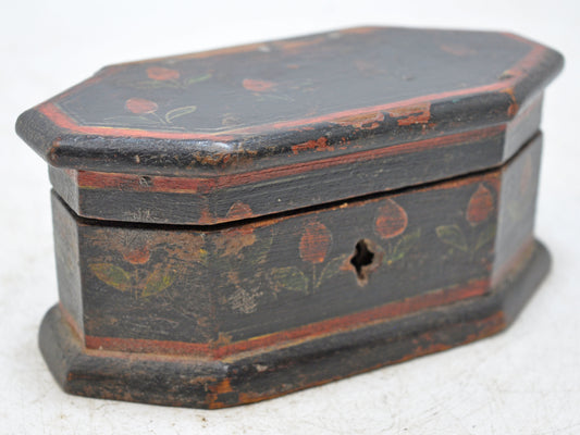 Vintage Wooden Small Hexagonal Storage Box Original Old Hand Crafted Painted