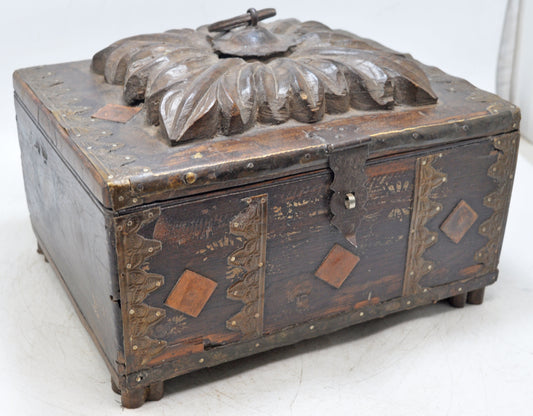 Antique Wooden Storage Chest Box Original Old Hand Crafted Fine Carved Metal Fitted