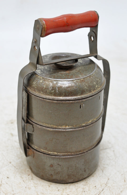 Vintage Iron Tin Small Tiffin Food Box Original Old Hand Crafted