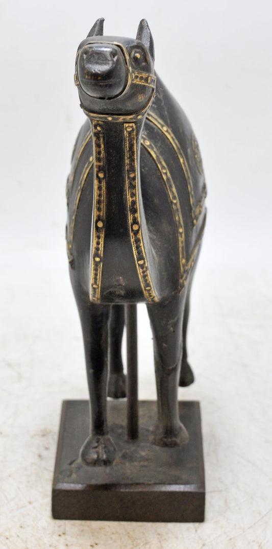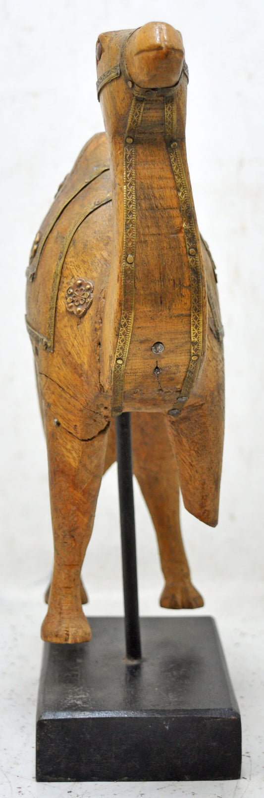 Vintage Wooden Camel Figurine Original Old Hand Carved Brass Fitted