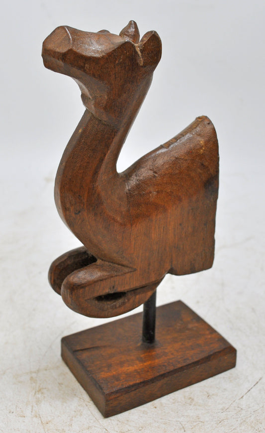 Vintage Wooden Camel Figurine on Stand Original Old Hand Carved