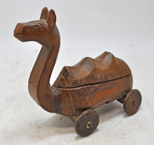Vintage Wooden Camel on Wheels Figurine Spice Box Original Old Hand Carved