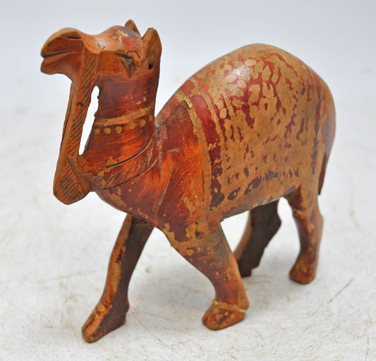 Vintage Wooden Small Camel Figurine Original Old Hand Carved Painted
