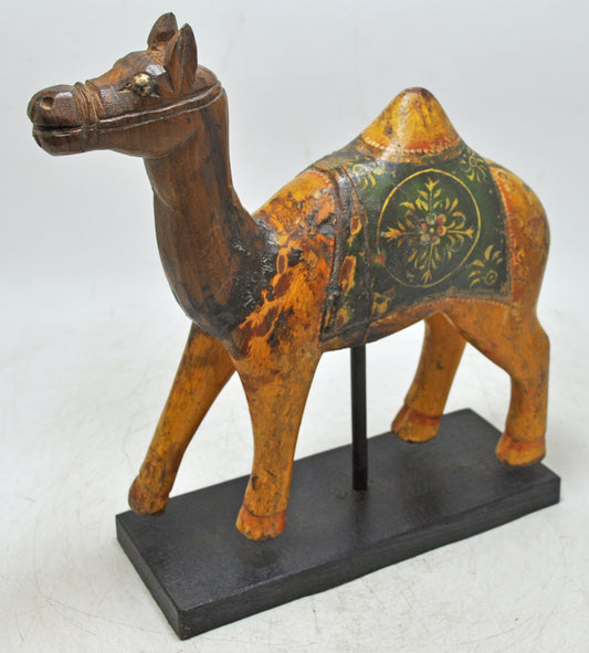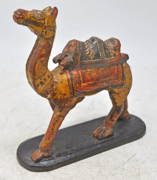Vintage Wooden Camel Figurine Original Old Hand Carved Fine Painted