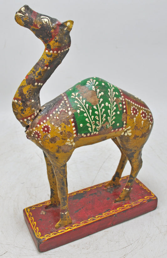 Vintage Wooden Camel Figurine Original Old Hand Carved Painted