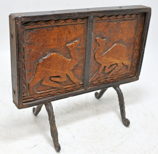 Vintage Wooden Iron Camel Carving Panel Original Old Hand Carved