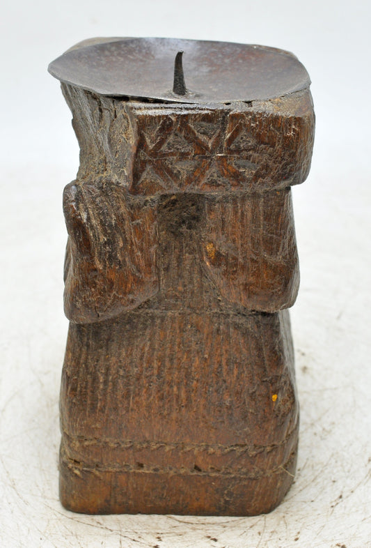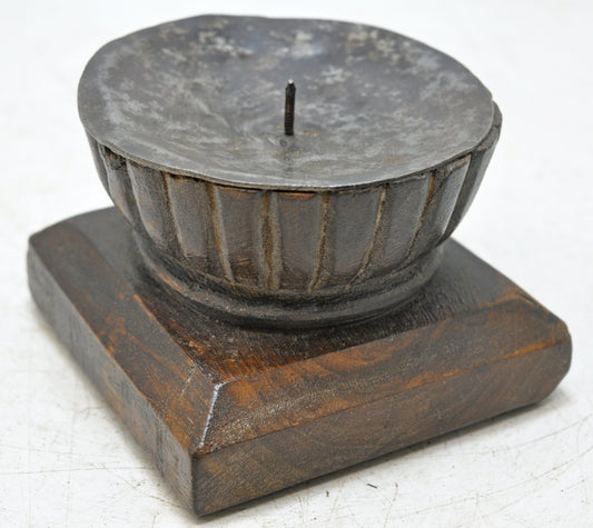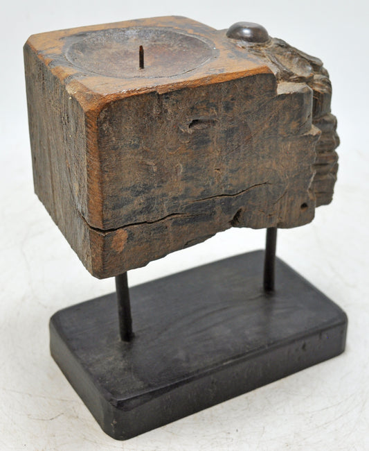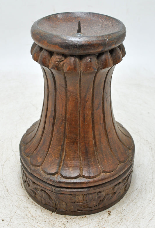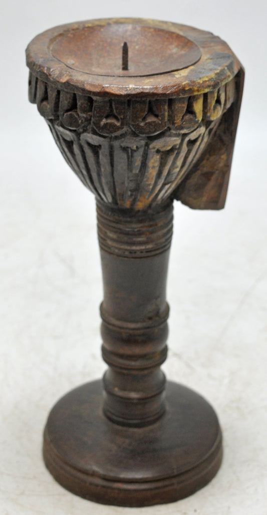 Antique Wooden Candle Holder Stand Original Old Hand Carved