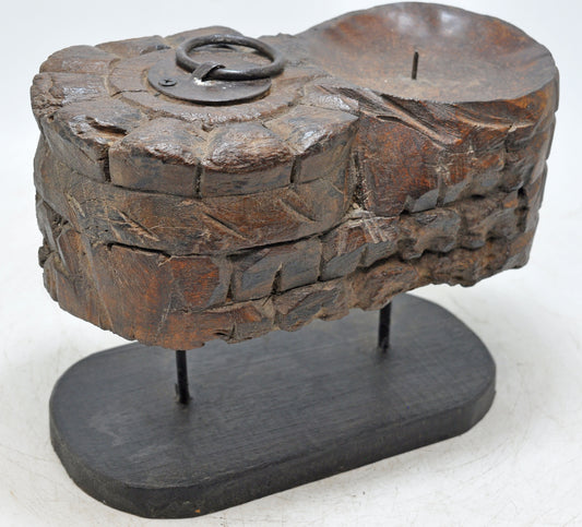 Antique Wooden Pillar Column Base Candle Holder Original Old Hand Carved