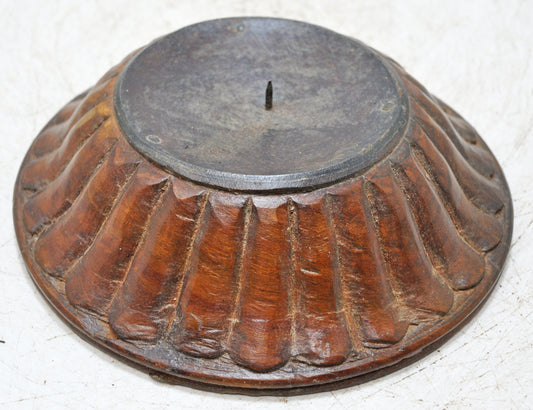 Vintage Wooden Round Candle Holder Stand Original Old Fine Hand Carved