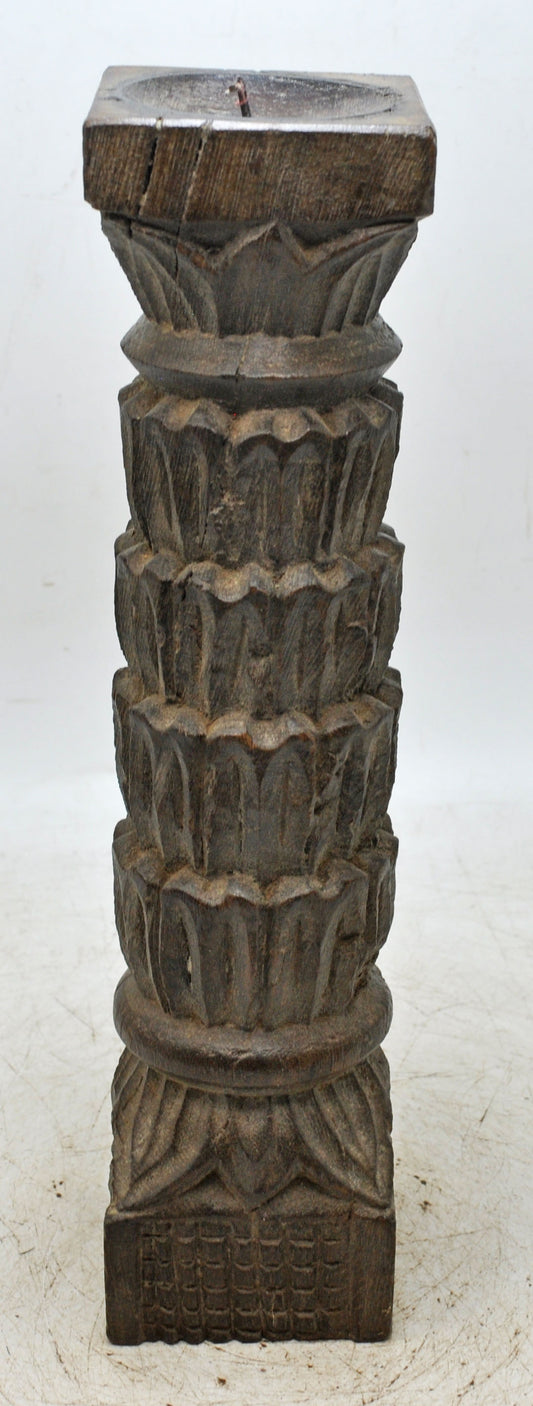 Antique Wooden Pillar Column Base Candle Stand Original Old Very Fine Hand Carved