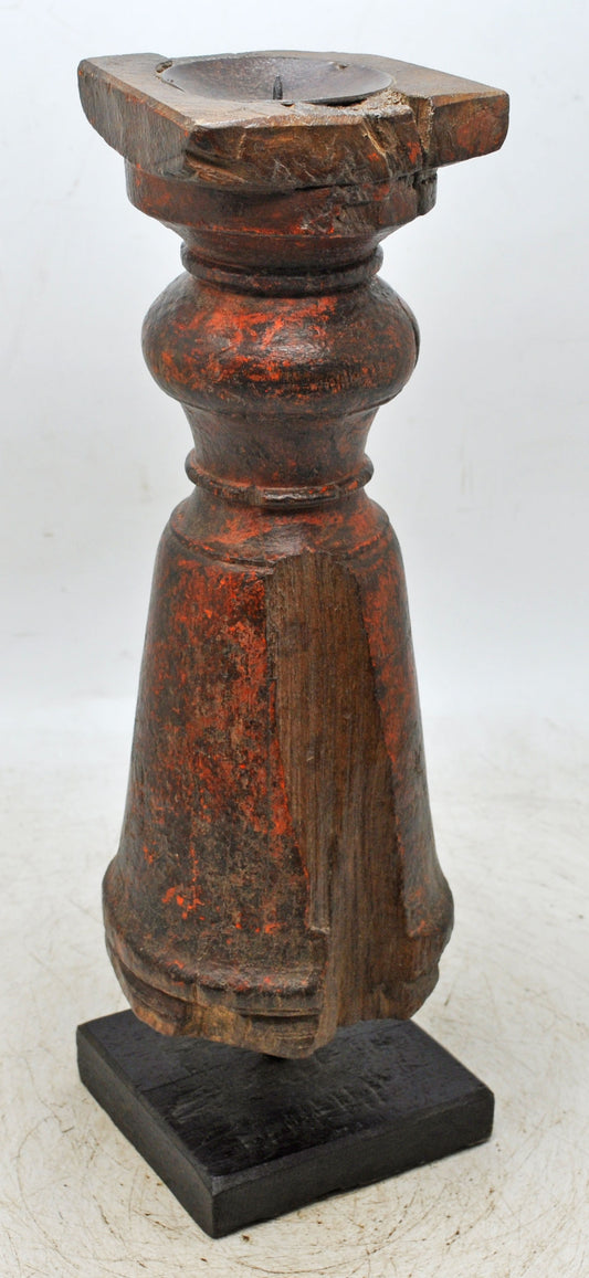 Antique Wooden Paga Candle Holder Stand Original Old Hand Carved Lacquer Painted