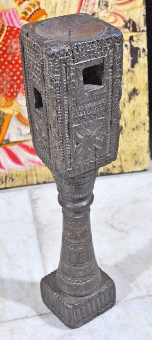 Antique Wooden Paga Candle Holder Stand Original Old Hand Carved